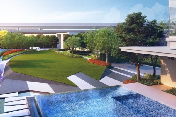 ภาพจำลองพื้นที่สวนส่วนกลางเชื่อมต่อ Luxurious Panoramic Clubhouse