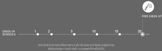3.3) มีบริการตรวจเช็คสภาพบ้าน 6 ครั้ง ฟรี ตลอด 20 ปี และรับประกันโครงสร้างและฐานราก 20 ปี