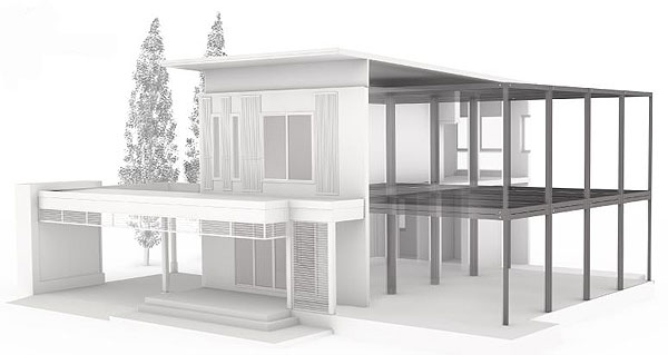 2.2) จุดต่อของโครงสร้างบ้านถูกเชื่อมต่อด้วยเทคโนโลยีที่ทันสมัย