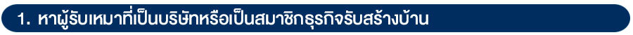 ข้อแนะนำอย่างแรกเลยคือ ควรเลือกผู้รับเหมาในรูปแบบนิติบุคคลมากกว่าบุคคลธรรมดาตัวคนเดียว เพราะการก่อสร้างบ้านต้องมีวิศวกร และสถาปนิกที่มีวิชาชีพประกอบกันเป็นทีมงานขึ้นมา นอกจากนี้ เราควรขอเยี่ยมชมผลงานในอดีตด้วยว่าเป็นอย่างไร และควรเยี่ยมชมออฟฟิศผู้รับเหมาด้วยเพื่อดูว่ามีที่อยู่หลักแหล่งหรือเปล่า สอบถามดูว่าตอนนี้มีงานล้นมือหรือไม่ ถนัดงานก่อสร้างตึกแถวหรือบ้านเป็นหลังๆ นอกจากนี้ ถ้าเป็นไปได้ และเรารับเรื่องราคาได้ อาจลองพิจารณาเลือกรายที่เป็นสมาชิกสมาคมธุรกิจรับสร้างบ้าน เพราะจะมีข้อได้เปรียบเช่น มีกติกาว่าให้ใช้สัญญารับเหมามาตรฐาน (แต่หลายรายก็อาจมีการดัดแปลงไม่ใช้แบบฟอร์มนี้ 100%) บริษัทที่จะเข้าเป็นสมาชิกได้ต้องมีคุณสมบัติน่าเชื่อถือระดับหนึ่ง เช่น ต้องมีสถาปนิก และวิศวกรประจำในองค์กร ต้องมีผลงานรับสร้างบ้านมาแล้วไม่น้อยกว่า 30 โครงการ เป็นต้น สุดท้ายลองติดต่อหลายๆ รายเพื่อทราบราคาประมาณการ และราคาเบื้องต้นดู