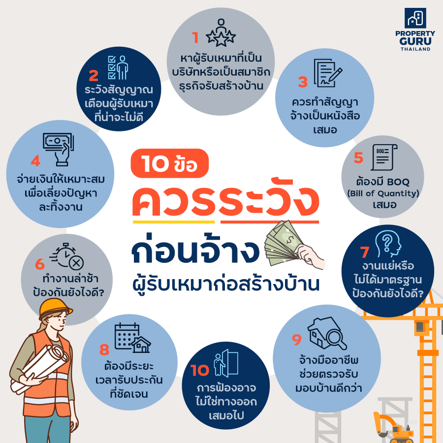 เรื่องน่าปวดหัวอย่างหนึ่งสำหรับคนที่สร้างบ้านเอง คือการจ้าง หรือหาผู้รับเหมาก่อสร้างที่ทำงานดี ไว้ใจได้ รับผิดชอบ และสร้างบ้านได้เสร็จเรียบร้อย แต่ในชีวิตจริงต้องยอมรับว่าหาได้ไม่ง่ายสำหรับผู้รับเหมาดีๆ แบบนี้ วันนี้ CheckRaka.com ได้รวบรวมประสบการณ์จากทีมงานซึ่งเคยปวดหัวกับผู้รับเหมากันมาแล้วหลายราย และจัดทำข้อสรุป 10 เรื่องควรรู้ หรือควรระวังก่อนจ้างผู้รับเหมามาให้พวกเราชาว CheckRaka.com เป็นแนวทางการเลือกดังนี้ครับ
