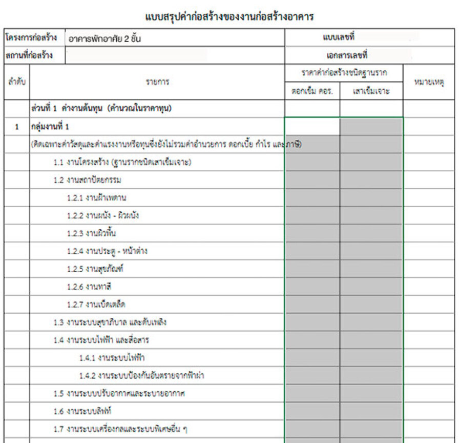 - ใช้เป็นราคากลางในการเปรียบเทียบราคาของผู้รับเหมาแต่ละรายก่อนที่เราจะเลือก ซึ่งเราจะเห็นได้ว่าใครคิดค่าแรง หรือค่าวัสดุแพงมากน้อยต่างกันแค่ไหน