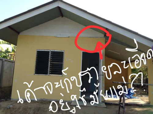 หลังคาบ้านเป็นแบบเปิดประทุน เป็นจุดๆ เวลาฝนตกต้องหากาละมังมาครอบหัวเพื่อไม่ให้เปียก