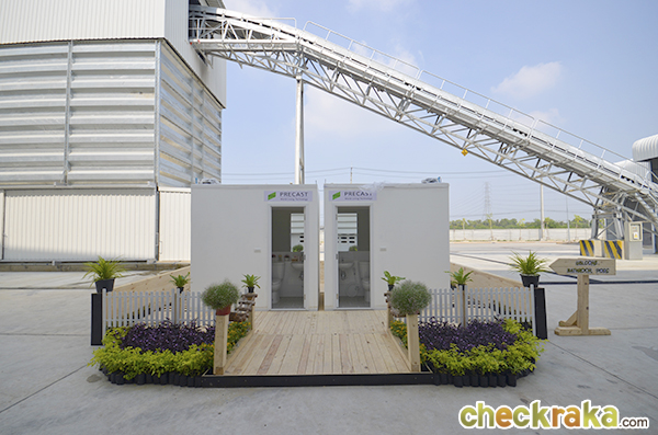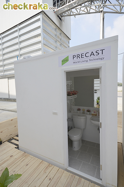 หลายปีมานี้ สังเกตได้ว่าพฤกษาเปิดโครงการใหม่ๆ อย่างต่อเนื่อง และมีทั้งแนวราบและแนวดิ่ง ซึ่งก็ปฏิเสธไม่ได้เลยว่าปัจจัยหนึ่งที่ทำให้พฤกษาสามารถก่อสร้างโครงการได้มากมายขนาดนั้นได้ ก็คือการที่พฤกษามีโรงงานผลิตชิ้นส่วนคอนกรีตสำเร็จรูปเป็นของตัวเอง ซึ่งในตอนนี้พฤกษาได้เดินเครื่องผลิตอย่างเต็มกำลังใน 7 โรงงาน ทำให้บริษัทสามารถรองรับการผลิตบ้านได้ 1,120 หลัง/เดือน ซึ่งสอดคล้องกับแผนการเปิดโครงการใหม่และแผนการส่งมอบบ้านคุณภาพให้กับลูกค้าที่เพิ่มสูงขึ้นในแต่ละปี นอกจากการผลิตผนังคอนกรีตเสริมเหล็กสำเร็จรูป, พื้นคอนกรีตเสริมเหล็ก และคานคอนกรีตเสริมเหล็กอัดแรงแล้ว ในปี 2557 พฤกษาได้นำห้องน้ำสำเร็จรูปมาใช้ในโครงการคอนโดมิเนียม ซึ่งข้อดีก็คือจะไม่มีการรั่วซึมของน้ำจากชั้นหนึ่งไปสู่อีกชั้นหนึ่งอย่างเด็ดขาด เพราะห้องน้ำจะไม่มีรอยต่อและควบคุมคุณภาพจากโรงงานอย่างละเอียดก่อนไปติดตั้งที่หน้างาน เดี๋ยวเราไปชมตัวอย่างห้องน้ำสำเร็จรูปกันเลยค่ะ
