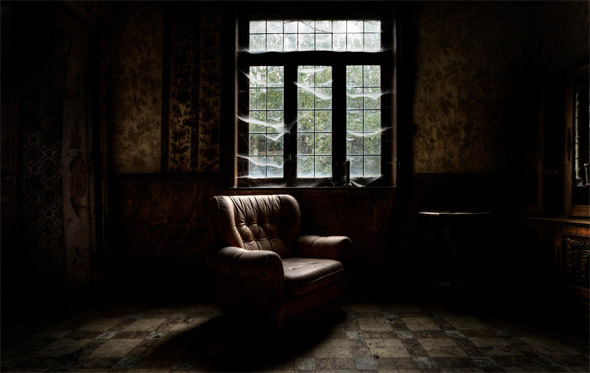 มุมหนึ่งภายในบ้านร้างที่เต็มไปด้วยหยากไย่