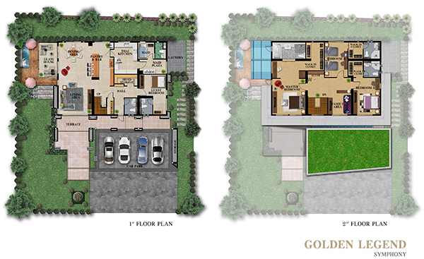 Floor Plan แบบบ้าน Symphony (รูปบนคือชั้น 1 และรูปล่างคือชั้น 2)