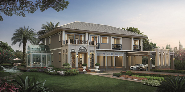 1. OPERA บ้านสไตล์โคโลเนียล พื้นที่ใช้สอย 467 ตร.ม. ขนาดที่ดินเริ่ม 143.9 ตร.วา 4 ห้องนอน 5 ห้องน้ำ 4 ที่จอดรถ ห้องพักผ่อน ห้องแม่บ้าน และ Glass House