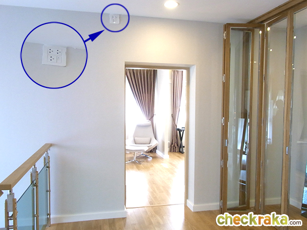 ตรงนี้เป็นปลั๊กไฟที่อยู่บนเพดานชั้น 2 ซึ่งโครงการได้ทำไว้รองรับสำหรับเสียบ Router ปล่อยสัญญาณอินเทอร์เน็ตได้เลยค่ะ