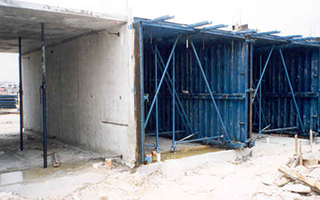 | 2. ระบบอุโมงค์ (Tunnel Form) ระบบนี้เป็นระบบโครงสร้างที่เทคอนกรีตผนังรับน้ำหนัก และพื้นพร้อมกันอย่างต่อเนื่องโดยใช้ไม้แบบ (เหล็ก) เป็นระบบที่ใช้กันมากในการสร้างทาวน์โฮม หรือทาวน์เฮ้าส์ซึ่งมีผนังอาคารแต่ละหลังเรียงแถวติดกัน ข้อดีคือ ปัญหารั่วซึมน้อย เพราะมีก็เพียงรอยต่อหลักๆ เช่น รอยต่อระหว่างห้องเท่านั้น และยังมีจุดเด่นคือความรวดเร็วและความแข็งแรงอีกด้วย แต่จุดอ่อนสำคัญของระบบนี้คือผนังอาจจะไม่เรียบนัก และแบบบ้านก็ค่อนข้างน้อย ไม่มีความหลากหลาย | ![]() ภาพการก่อสร้างระบบอุโมงค์ (Tunnel) |