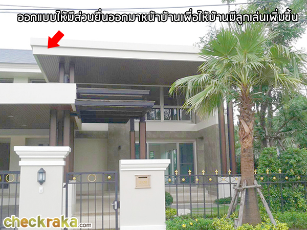 แต่ทางโครงการก็ได้เพิ่มลูกเล่นสร้างองค์ประกอบบ้านเพิ่มเติม เช่น ส่วนของทางเข้าหน้าบ้าน