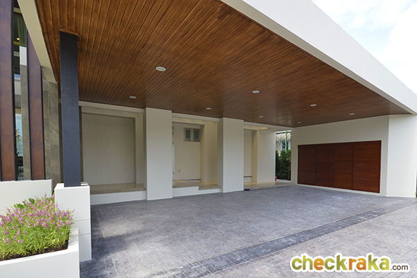 เริ่มกันตั้งแต่หน้าบ้านจะเห็นโรงจอดรถกว้างขวางจอดรถได้อย่างน้อย 4 คัน พร้อมทั้งมีช่องเก็บของตรงกำแพงด้านข้างค่ะ