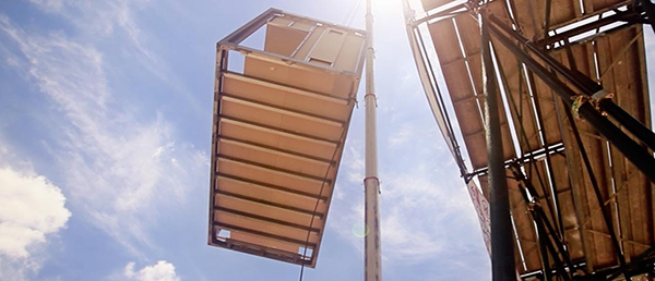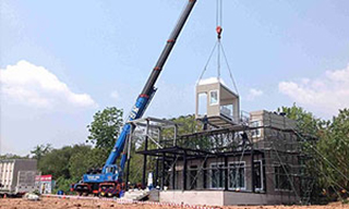 ภาพโครงสร้างเหล็ก Modular ว่ากันว่าแข็งแรงขนาดหากปล่อยลงจากตึกสูง 2 ชั้น ก็ยังคงสภาพเดิมได้อยู่