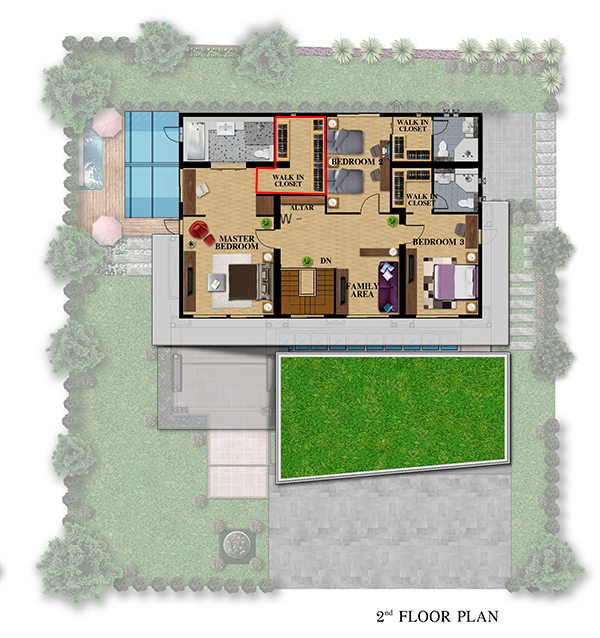 ภาพ Floor Plan ของชั้น 2 จะเห็นได้ว่าห้องแต่งตัวมีขนาดใหญ่ เป็นจุดเด่นของ Master Bedroom เลยค่ะ