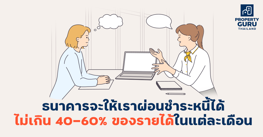 โดยทั่วไปธนาคารจะดูจากรายได้ของผู้กู้เป็นหลัก ซึ่งธนาคารจะให้เราผ่อนชำระหนี้ได้ไม่เกิน 40-60% ของรายได้ในแต่ละเดือน ถ้าเป็นรายได้พิเศษหรือโบนัส ธนาคารก็อาจจะไม่ได้นำรายได้ส่วนนี้มาคำนวณ โดยรายได้ขั้นต่ำในการขอกู้บ้านจะอยู่ที่ 10,000-15,000 บาท ก่อนจะยื่นกู้ก็ลองคำนวณคร่าวๆ ดูก่อนก็ได้ค่ะ อย่างเช่น ถ้ามีรายได้ 25,000 บาท ธนาคารอาจให้ผ่อนหนี้ทุกชนิดรวมกันไม่เกิน 40% ของรายได้ เท่ากับจะผ่อนหนี้ไม่ได้ไม่เกิน 10,000 บาท เป็นต้น ซึ่งถ้าลองยื่นกู้แล้วพบว่าวงเงินที่ธนาคารอนุมัติน้อยกว่าราคาบ้านที่ต้องการ ก็จะมีทางให้เลือก คือ 1. หาเงินดาวน์เพิ่มเพื่อขอวงเงินกู้น้อยลง 2. หาผู้กู้ร่วมที่มีความสัมพันธ์ทางสายเลือด 3. ลดขนาดบ้านที่ต้องการ