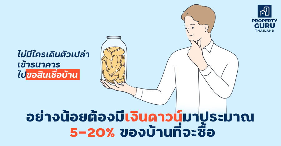 ส่วนใหญ่แล้วจะไม่มีใครเดินตัวเปล่าเข้าธนาคารไปขอสินเชื่อบ้าน แต่ต้องมีเงินดาวน์ติดกระเป๋าประมาณ 5-20% ของราคาบ้านที่จะซื้อ ซึ่งบ้านและคอนโดมิเนียมแต่ละโครงการ อาจมีเงื่อนไขจำนวนเงินดาวน์ไม่เท่ากัน ต้องตรวจสอบและคำนวณเงินในกระเป๋าให้ดี ส่วนใครที่อยากเป็นเจ้าของที่ดินเปล่า ธนาคารมักจะไม่อนุมัติวงเงินสินเชื่อ และสำหรับบ้านมือสอง ก็อาจต้องวางเงินดาวน์ประมาณ 20% ของราคาบ้าน