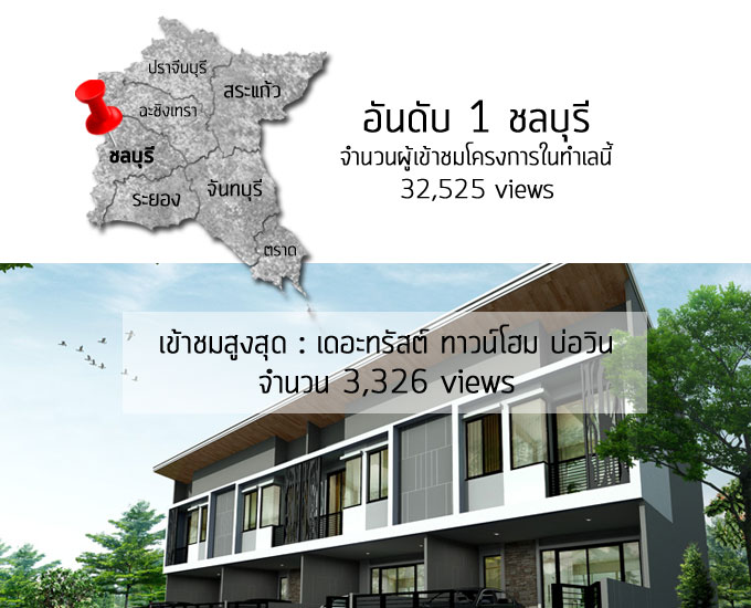 โครงการบ้าน-ทาวน์โฮมที่มีคนเข้าชมมากที่สุดในย่านนี้บนเว็บไซต์เรา คือ เดอะทรัสต์ ทาวน์โฮม บ่อวิน (The Trust) ของบริษัท ควอลิตี้เฮ้าส์ จำกัด (มหาชน) ยอดเข้าชม 3,326 ครั้ง