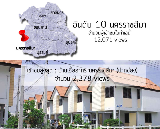 จังหวัดนครราชสีมา หรือโคราช ถือเป็นจังหวัดที่มีพื้นที่มากที่สุดในประเทศไทย มีความน่าสนใจทั้งทางด้านการท่องเที่ยว การเกษตร และอุตสาหกรรม จึงทำให้มีนักลงทุนเข้ามาลงทุนทำอุตสาหกรรมต่างๆ มีผู้คนเดินทางเข้าออกจังหวัดอยู่สม่ำเสมอ อีกทั้งยังสามารถเดินทางเข้าออกจังหวัดได้ทั้งทางรถยนต์ รถไฟ และรถประจำทาง ซึ่งมีเที่ยวการเดินรถทุกวัน และยังสามารถเดินทางโดยเครื่องบินมาลงท่าอากาศยานนครราชสีมาได้โดยตรง ส่วนอสังหาริมทรัพย์ที่ได้รับความนิยมสูงสุดในนครราชสีมา คือ ที่ดินและทาวน์เฮ้าส์ โดยเฉพาะที่ดินในอำเภอเมืองฯ และอำเภอปากช่อง ซึ่งมีอัตราการซื้อขายสูงเมื่อเทียบกับอำเภออื่นๆ