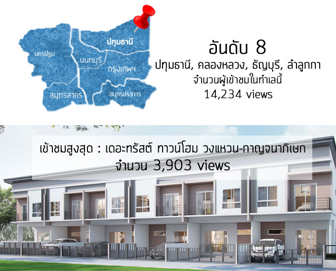 อันดับ 8 : ปทุมธานี โซนคลองหลวง, ธัญบุรี, ลำลูกกา (14,234 ครั้ง)