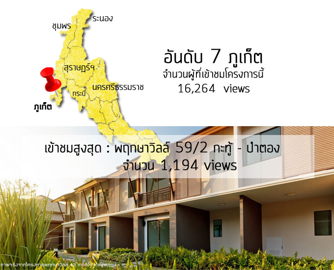โครงการบ้าน-ทาวน์โฮมที่มีคนเข้าชมมากที่สุดในย่านนี้บนเว็บไซต์เราคือ พฤกษาวิลล์ 59/2 กะทู้ - ป่าตอง (Pruksaville 59/2) ของบริษัท พฤกษาเรียลเอสเตท จำกัด (มหาชน) ยอดผู้เข้าชม 1,194 ครั้ง