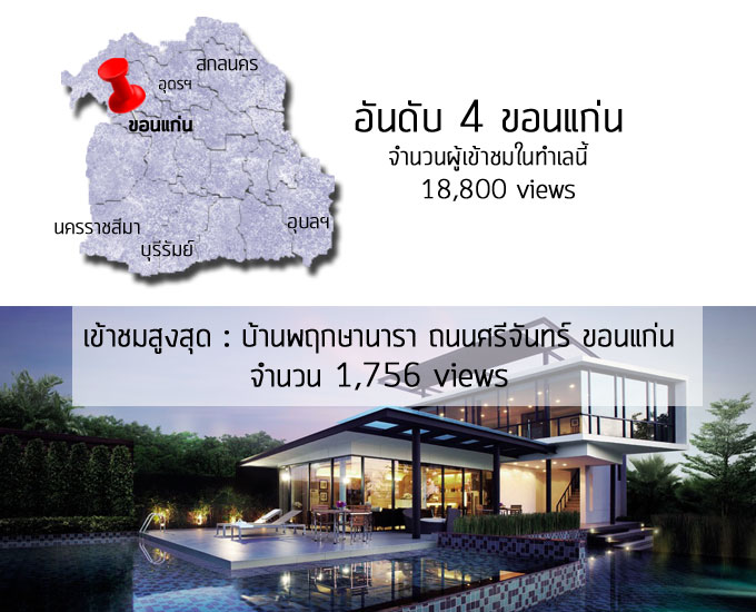 ขอนแก่นได้รับการขนานนามว่าเป็นเมืองหลวงของภาคอีสาน เพราะเป็นจุดศูนย์รวมของศูนย์ราชการ สถานศึกษา เป็นที่ตั้งของมหาวิทยาลัยชั้นนำ การแพทย์ และการประชุมสัมมนา อีกทั้งเต็มไปด้วยธุรกิจของภาคเอกชน มีวัฒนธรรมที่เข้มแข็ง และอยู่ในจุดภูมิศาสตร์ที่เข้าถึงง่าย โดยตอนนี้มีโครงการก่อสร้างรถไฟทางคู่ขนาดทางมาตรฐาน เส้นโคราช-หนองคายซึ่งผ่าน 4 จังหวัด คือ นครราชสีมา ขอนแก่น อุดรธานี หนองคาย แผนจะคาดว่าจะเปิดใช้ได้ปี 2565 เป็นการตอกย้ำอย่างดีถึงศักยภาพของพื้นที่ ส่วนใหญ่เป็นโครงการแนวราบไม่ว่าจะเป็นบ้านเดี่ยว ทาวน์โฮม และอาคารพาณิชย์ ส่วนทำเลที่มีโครงการเกิดขึ้นหนาตามากที่สุด อยู่บริเวณรอบบึงหนองโคตร ต.บ้านเป็ด อ.เมืองขอนแก่น เคาะราคาขายตั้งแต่ 2 ล้านบาท ถึง 10 ล้านบาทขึ้นไป