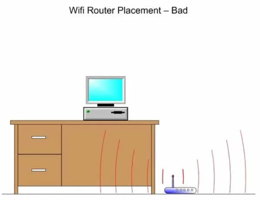 วางเราเตอร์ให้ห่างจากอุปกรณ์ไฟฟ้า ไมโครเวฟ วัตถุโลหะ เราเตอร์ตัวอื่นๆ และไม่วางในตำแหน่งที่เป็นมุมอับ หรือมีวัตถุโลหะ หรือกระจกบังอยู่ด้วย เพราะอุปกรณ์เหล่านี้ จะมีคลื่นไฟฟ้ารบกวนสัญญาณ หรือเป็นตัว Block สัญญาณทำให้สัญญาณบอด (Dead Spot) และจะทำให้สัญญาณ WiFi อ่อนลงได้