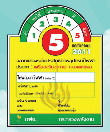อีกสิ่งที่เราต้องดูในการเลือกซื้อแอร์บ้านก็คือ ต้องมั่นใจว่ามีฉลากประหยัดไฟเบอร์ 5 ค่ะ ซึ่งฉลากประหยัดไฟนี้คือ ฉลากที่บอกถึงค่าระดับการใช้งานของเครื่องใช้ไฟฟ้านั้นๆ ทดสอบตามมาตรฐานผลิตภัณฑ์อุตสาหกรรม และข้อกำหนดของการไฟฟ้าฝ่ายผลิตแห่งประเทศไทย