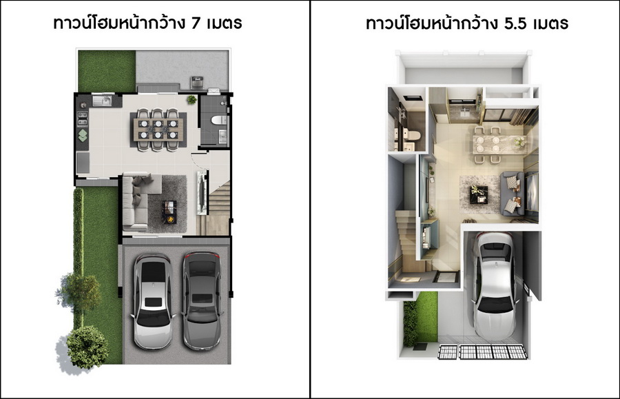 เปรียบเทียบทาวน์โฮมหน้ากว้าง 7 เมตร 2 ที่จอดรถของโครงการ PLENO บางนา-อ่อนนุช 2 และทาวน์โฮมหน้ากว้าง 5.5 เมตร 1 ที่จอดรถ ของโครงการ PLENO สุขสวัสดิ์ 70