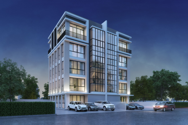บรรยากาศโครงการ เฮดควอเทอร์ส เอกมัย-ลาดพร้าว มองมาจากฝั่งตรงข้าม