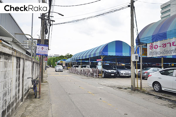 หันกลับไปปากซอยกันอีกครั้ง จุดสังเกตง่ายๆ ปากซอยจะเป็นเต็นท์ขายรถยนต์มือ 2