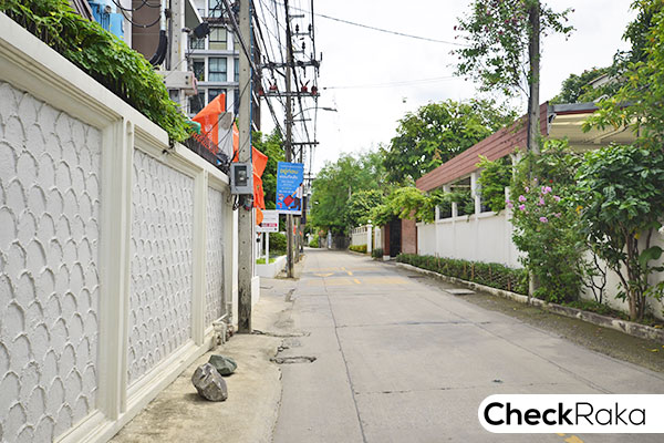 บรรยากาศค่อนข้างเงียบค่ะ สภาพแวดล้อมส่วนใหญ่เป็นบ้านพักอาศัย 1-2 ชั้น