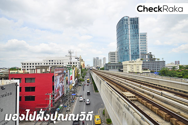 ภาพมุมสูง มองจาก HEART SUKHUMVIT ไปยัง BTS สถานีบางจาก