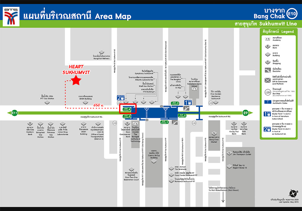 เริ่มจากรถไฟฟ้า BTS สถานีบางจากค่ะ เป็นสถานีที่อยู่ใกล้ HEART SUKHUMVIT มากที่สุด ประมาณ 650 ม.