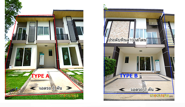 สรุปความแตกต่างของบ้าน Type A และ Type B ที่สังเกตเห็นได้ชัดเจนตามนี้