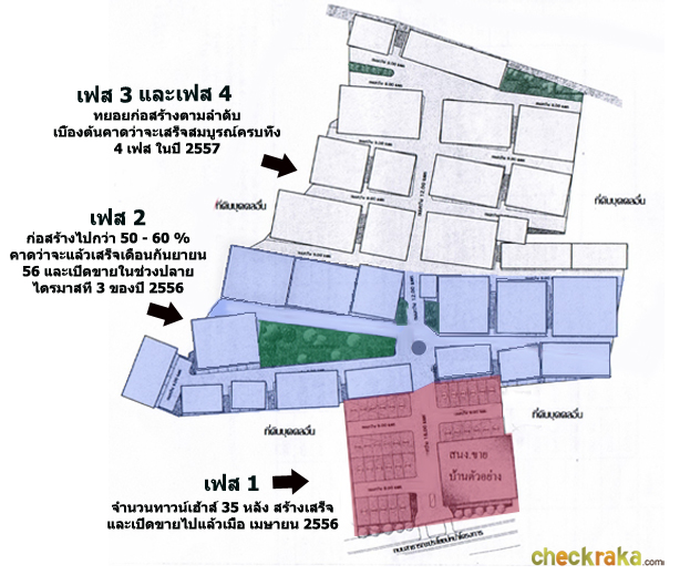 - เฟส 1 - สร้างทาวน์โฮมและเปิดขายจำนวน 35 หลัง โดยเปิดขายไปแล้วเมื่อเดือนเมษายน 2556