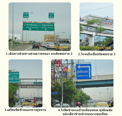 เส้นทางที่ใช้เดินทางมาโครงการนี้ทางเลือกสะดวกที่สุด คือใช้ทางด่วนดาวคะนองมาลงที่ถนนพระราม 2 ตามรูปข้างล่างนี้ (ทางที่ 1) รวมระยะทางลงทางด่วนดาวคะนองมาถึงโครงการประมาณ 10.9 กิโลเมตร