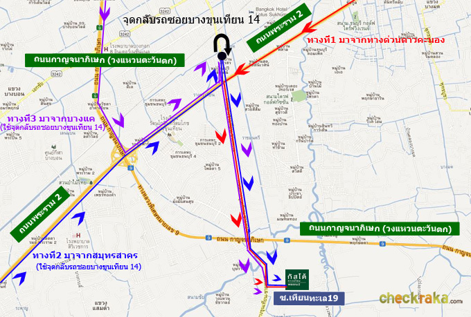 - ทางที่ 2 มาจากสมุทรสาคร - วิ่งมาทางถ.พระราม2 (ขาเข้าเมือง) > เลี้ยวซ้ายเข้าถ.บางขุนเทียน (ทางไป ถ.เอกชัย) > กลับรถตรงจุดกลับรถ ซ.บางขุนเทียน 14 > ตรงมาเรื่อยๆบน ถ.บางขุนเทียน > เลี้ยวซ้ายเข้าซ.เทียนทะเล19 จนถึงโครงการ
