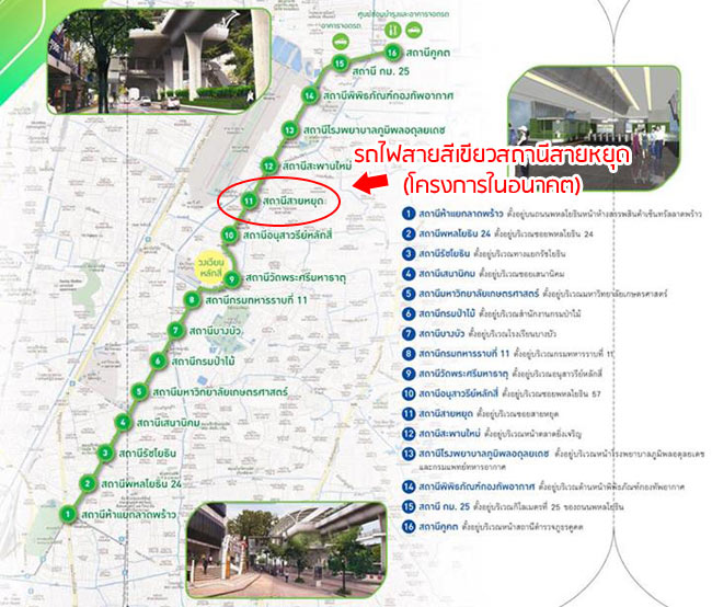 1) รถไฟฟ้าสายสีเขียวช่วงต่อขยายหมอชิต-สะพานใหม่-คูคต สถานีสายหยุด (โครงการในอนาคต)
