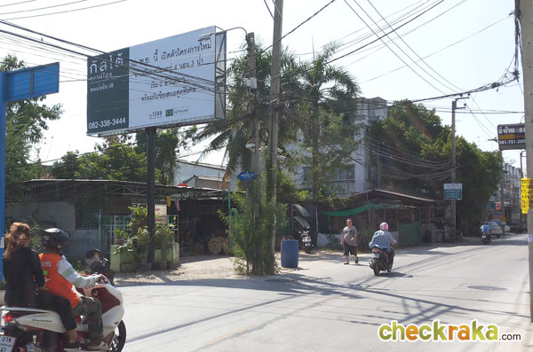 บรรยากาศซอยพหลโยธิน 48 หน้าทางเข้าโครงการมีอาคารพาณิชย์ และร้านอาหารตามสั่ง