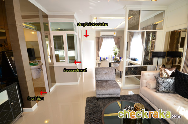 เราจะเริ่มเยี่ยมชมบ้านตัวอย่างด้วยแบบบ้าน Type B กันก่อน เพราะเป็นแบบที่มีขนาดใหญ่กว่า Type A และมีรายละเอียด รวมถึงฟังก์ชั่นมากกว่า เสร็จแล้วเดี๋ยวจะตามด้วยแบบบ้าน Type A ค่ะ (ในส่วนของ Layout ของบ้านทั้งสองแบบนี้ ทางโครงการแนะนำว่าให้ไปเยี่ยมชม และขอได้จาก Sales โครงการได้ที่ตัวโครงการได้เลยค่ะ)