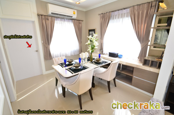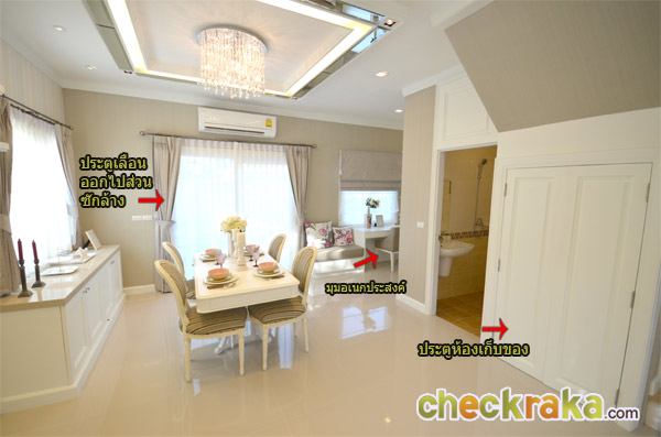 ส่วนท้ายของบ้านจัดเป็นที่นั่งทานอาหารและประตูที่ใช้เปิดออกไปส่วนซักล้างหลังบ้าน