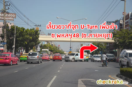 สามารถเลี้ยวขวาที่จุด U-Turn เพื่อเข้าซ.พหลฯ 48 (ซ.สายหยุด) ได้เลย ทางเข้าซอยจะอยู่ทางขวามือตรงจุดกลับรถพอดี