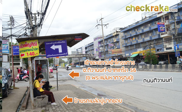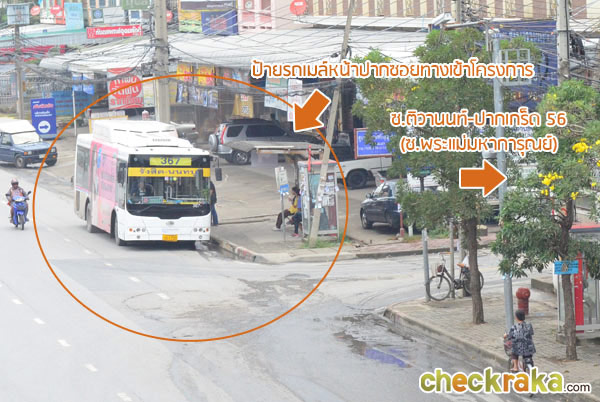 ป้ายรถเมล์อยู่ตรงซอยทางเข้าโครงการเลย ซอยติวานนท์-ปากเกร็ด 56 (ซ.พระแม่มหาการุณย์)