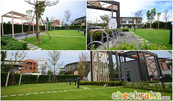 มุมต่างๆ ของสวนหย่อมด้านหน้าโครงการที่ดีไซน์ออกมาตามคอนเซปต์ "Natural Weaving"