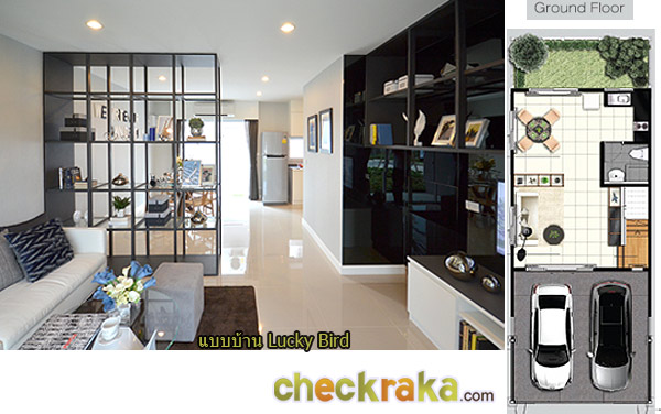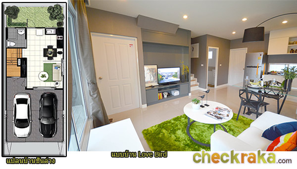 บ้านตัวอย่างของทาวน์โฮมแบบ "Love Bird" พร้อมแปลนบ้านชั้นล่าง