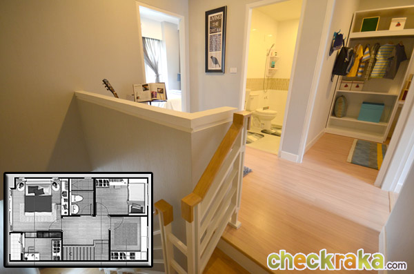 ภาพรวมของบริเวณพื้นที่ด้านนอกห้องของบ้านชั้น 2 พร้อมแปลนบ้านจากทางโครงการ พอให้เห็นสัดส่วน
