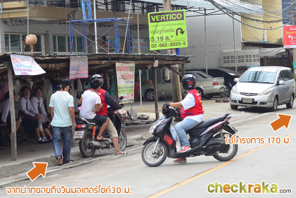 วินมอเตอร์ไซค์ห่างจากปากซอยประมาณ 30 ม. และห่างจากโครงการประมาณ 170 ม.