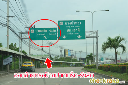 ออกซ้ายตรงป้ายปากเกร็ด-รังสิตเพื่อรอไฟแดงตรงแยกสวนสมเด็จ