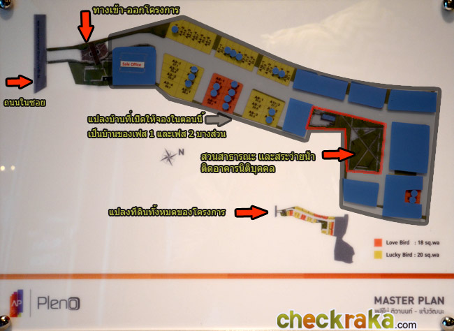 2) Lucky Bird ทาวน์โฮม 2 ชั้น หน้ากว้าง 5.5 เมตร, พื้นที่ 20 ตารางวา, พื้นที่ใช้สอย 124 ตารางเมตร, 3 ห้องนอน 2 ห้องน้ำ และ 2 ที่จอดรถ (สัดส่วนแบบบ้าน Lucky Bird มีประมาณ 70% ในขณะที่ Love Bird มีประมาณ 30% ของทั้งโครงการ)