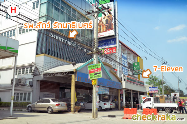 ถัดมาก็จะมี รพ.สัตว์ รัตนาธิเบศร์ และ 7-Eleven อยู่ติดกันค่ะ