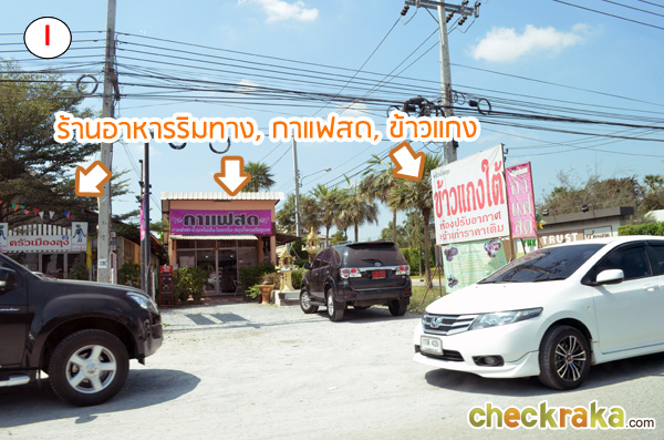 ตรงมาเรื่อยๆ จะเห็นร้านอาหารริมทาง, ข้าวแกง, กาแฟสด